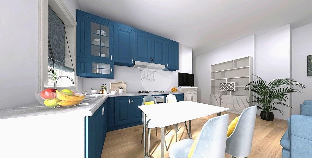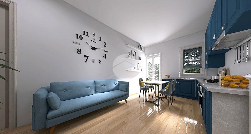 Dal portoncino d'ingresso blindato si accede ad un accogliente soggiorno con cucina a vista.