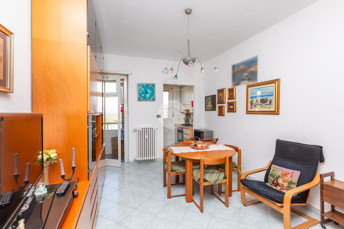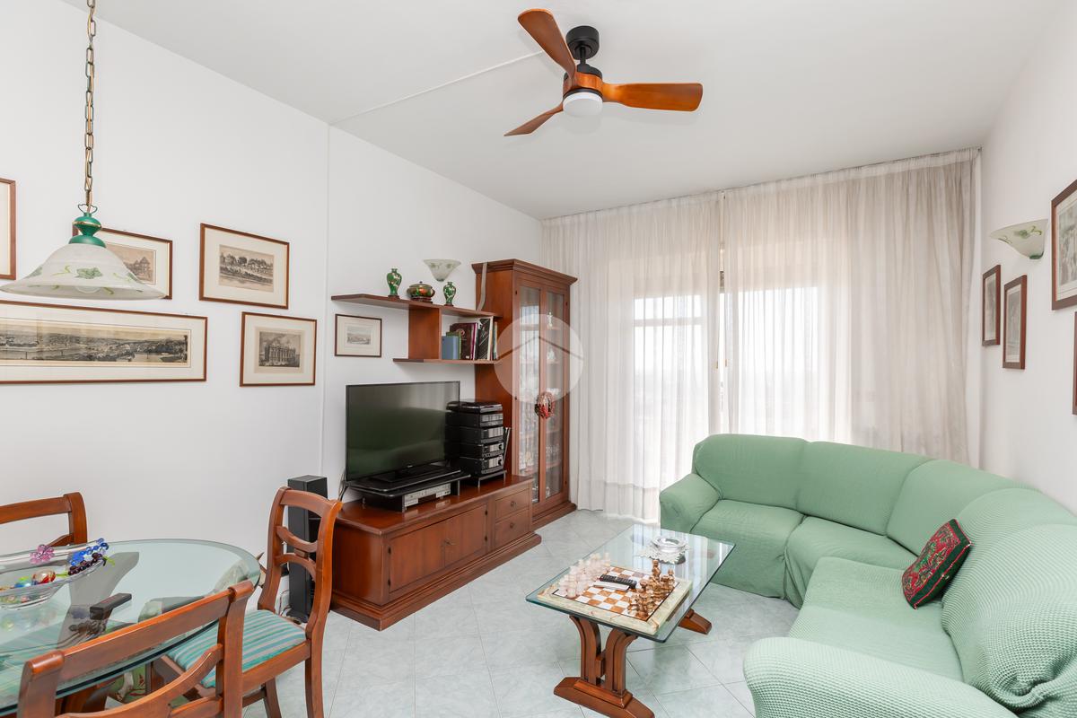Dal portoncino blindato si accede ad un comodo ingresso che distribuisce in modo funzionale tutti gli ambienti interni. Dal soggiorno con angolo cottura si accede al primo balcone con un comodo ripostiglio e l'attacco per la lavatrice.
