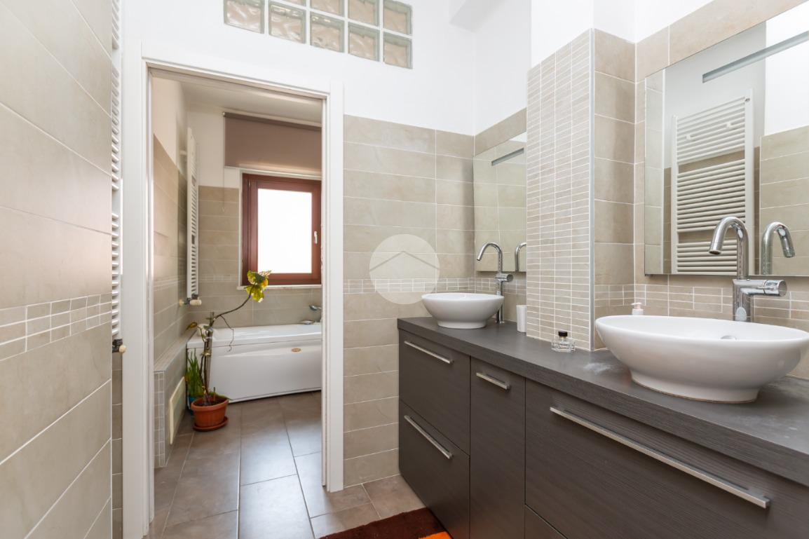 Il disimpegno divide la zona giorno dalla zona notte, con due camere da letto e i doppi servizi, di cui uno dotato di vasca idromassaggio e l'altro di doccia.