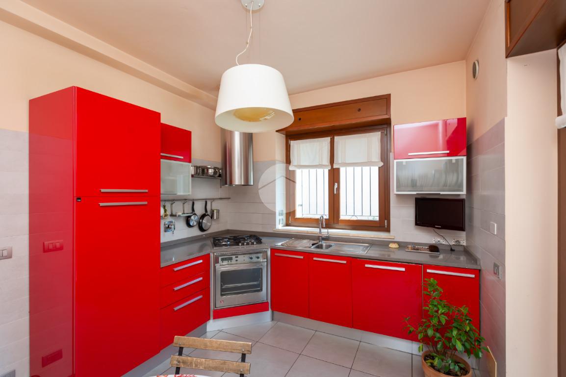 La cucina abitabile in pianta quadrata è funzionale ed affaccia su un balcone che porta all'area esterna.