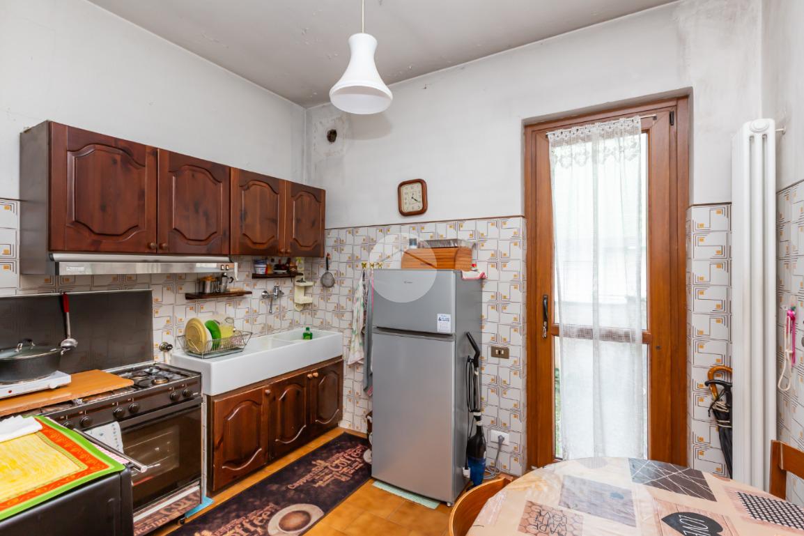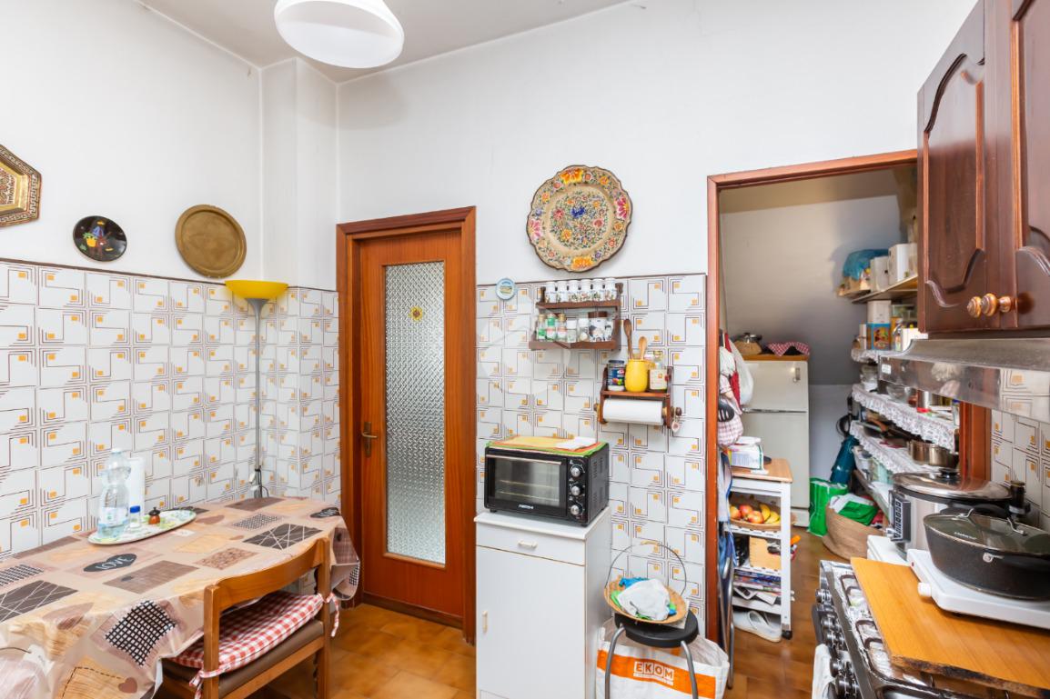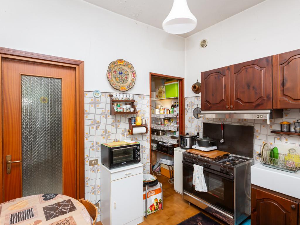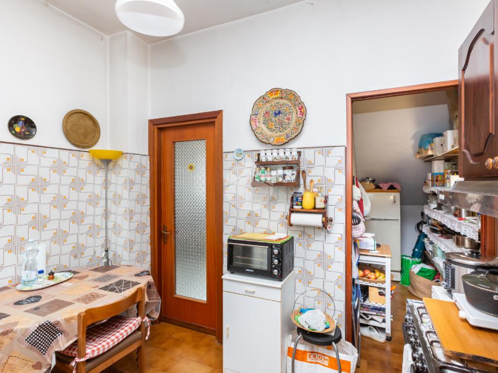 Dal portoncino d'ingresso blindato si accede alla zona giorno accogliente con adiacente una funzionale cucina ed una dispensa.
